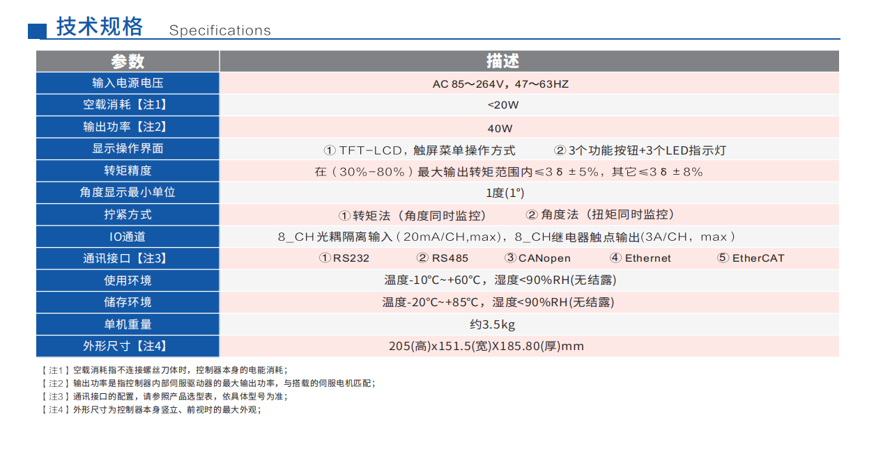 專利外觀設(shè)計 TFT-LCD彩色背景顯示可實現(xiàn)本機設(shè)置、編程及狀態(tài)的監(jiān)控與顯示 支持多種任務(wù)組合模式,可用于多種裝配需求 每個任務(wù)多達8種不同的扭矩參數(shù)設(shè)置 內(nèi)置伺服驅(qū)動器,可提供扭矩、轉(zhuǎn)角監(jiān)控及減速擰緊等精密控制 提供用于過程優(yōu)化及診斷的圖形工具 提供用于流程控制的可編程IO及系統(tǒng)擴展組件 提供用于高級數(shù)據(jù)存儲及工廠控制交互的通訊接口 配有實體按鈕、LED指示燈等雙重操作及監(jiān)控功能,以進一步提升控制器的可靠性 方便靈活的安裝方式,適配于多種應(yīng)用場合聯(lián)系艾而特