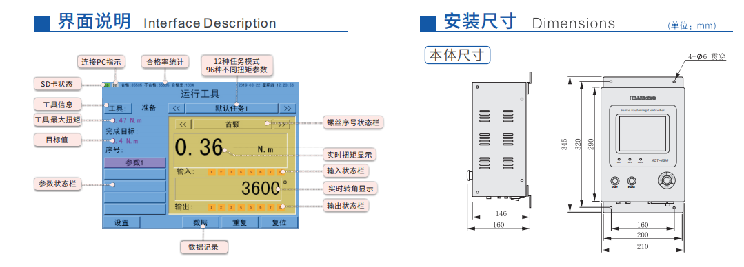 TFT-LCD可實(shí)現(xiàn)本機(jī)設(shè)置、編程及狀態(tài)的監(jiān)控與顯示 12種任務(wù)模式,可用于多種裝配需求 每個(gè)任務(wù)多達(dá)8種不同的扭矩參數(shù)設(shè)置 內(nèi)置伺服驅(qū)動(dòng)器,可提供扭矩、轉(zhuǎn)角監(jiān)控及減速擰緊等精密控制 提供用于流程控制的可編程10及系統(tǒng)擴(kuò)展組件 提供用于高級(jí)數(shù)據(jù)存儲(chǔ)及工廠(chǎng)控制交互的通訊接口 配有實(shí)體按鈕、LED指示燈等雙重操作及監(jiān)控寫(xiě)能,以進(jìn)一步 提升控制器的可靠性 美觀(guān)緊湊的外形結(jié)構(gòu),方便靈活的安裝方式,適配于多種應(yīng)用場(chǎng)合重些聯(lián)系艾而特